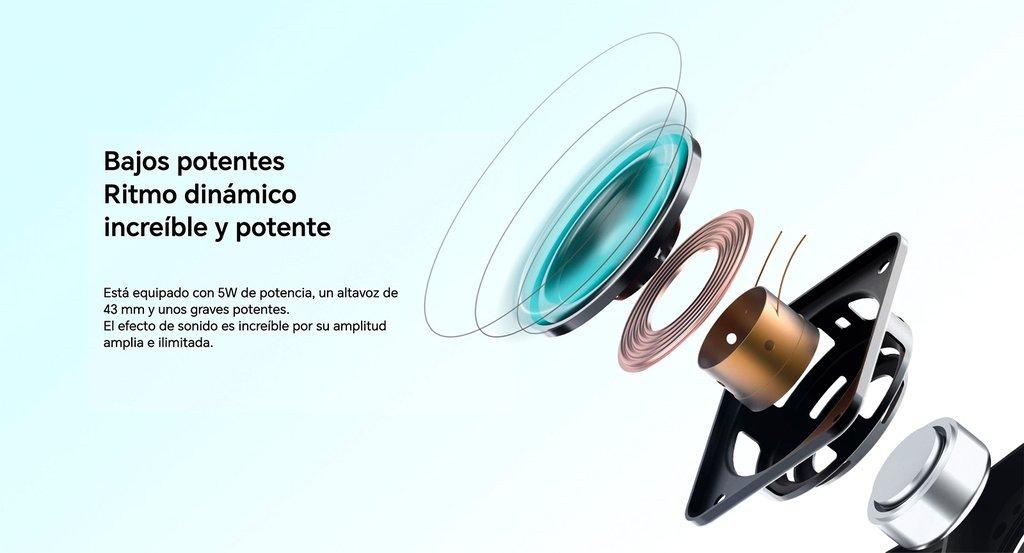 La potencia de salida de 5 W y el radiador pasivo integrado ofrecen un espectro sonoro amplio, desde graves profundos hasta agudos cristalinos, para una experiencia auditiva envolvente. La cavidad acústica interna ha sido optimizada para reforzar las frecuencias bajas, dando como resultado un sonido equilibrado y definido en cualquier género musical.